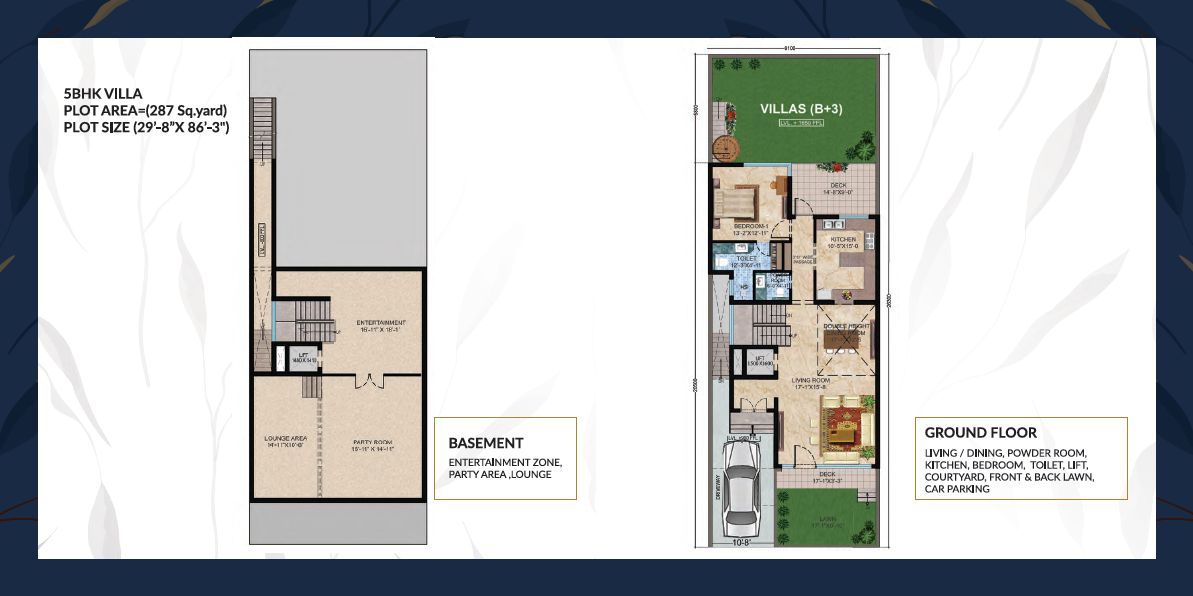 | Type 5 BHK Villa | Builtup Area 287 Sq. Yards | Price 7.80 Cr. | Floor Plan
